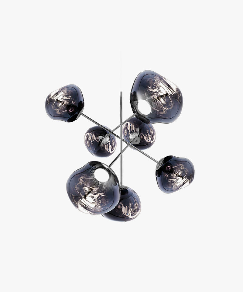 Description: A cluster-style pendant lamp with multiple clear glass shades and a black metal frame.
